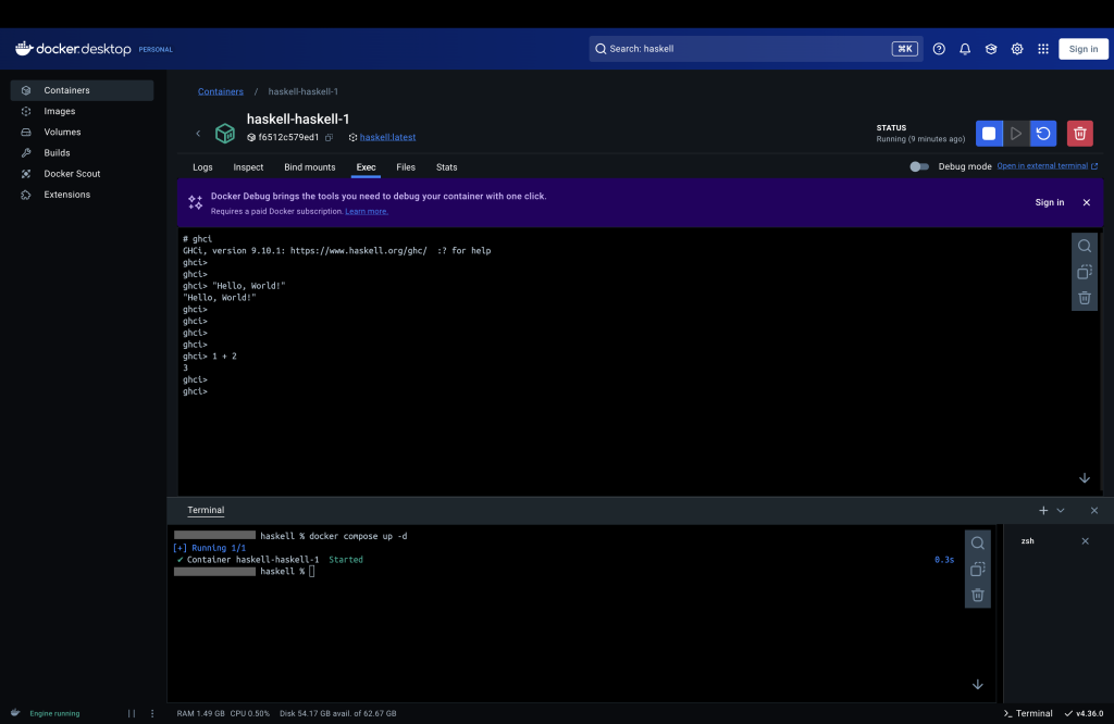haskell % docker compose up -d